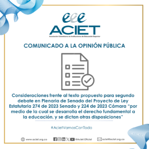 Bogotá D.C., 22 de abril de 2024. La Asociación Colombiana de Instituciones de Educación Superior – ACIET se complace en compartir los resultados y reflexiones generadas durante el Congreso Nacional: